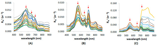 - Lubac, B.; Loisel, H. Variability and classification of remote sensing reflectance spectra in the eastern English Channel and southern North Sea. Remote Sens. Environ. 2007, 110, 45–58. [Google Scholar] [CrossRef]