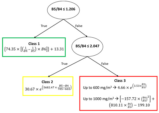 | Class 3_600 (75.89 ≤ chl-a ≤ 600) | B5/B3 | Exp | 6 | 21.40 | 0.82 | 47.22 | 14.40 | (4.66 3.53) |
