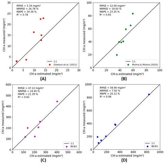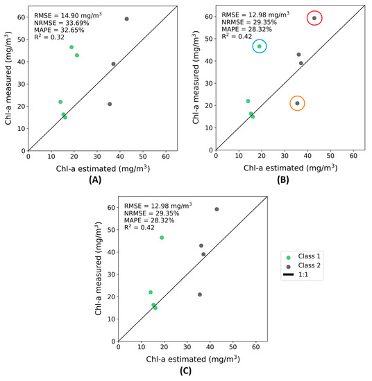 | Chl-a concentration up to 1000 mg/m3—Ntotal = 69 | ||||||