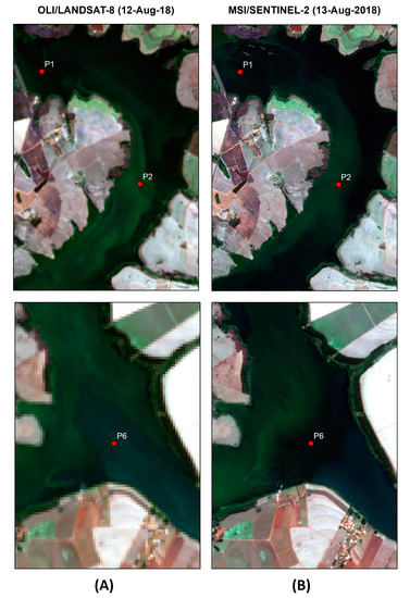 - Lins, R.C.; Martinez, J.-M.; Marques, D.M.; Cirilo, J.A.; Fragoso, R., Jr. Assessment od chlorophyll-a remote sensing algorithms in a productive tropical estuarine-lagoon system. Remote Sens. 2017, 9, 516. [Google Scholar] [CrossRef]
