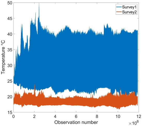 Outlier removal was only required for the second Camp Hill thermal survey where wind turbulence resulted in a slight loss of data over a 1.6% area of the image, resulting in a patch of missing values. Each pixel determined to be an outlier was converted to NaN (not a number) in this area and was replaced with a pixel derived as the median of the pixels in the surrounding valid area using a circular mask [72,73].