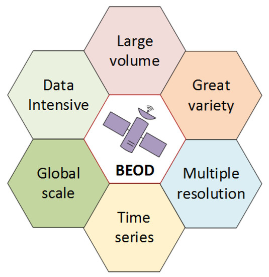 - Great variety: Due to the difference of sensors, the format of EO data obtained is also varied, such as Hierarchical Data Format (HDF), network Common Data Format (NetCDF), and GeoTiff. Meanwhile, the data structure is also different, which will be a complicated process in the fusion analysis of multisource data [38].