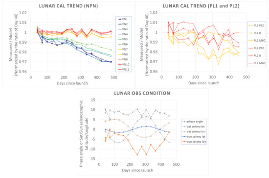 - Urabe, T.; Xiong, X.; Hashiguchi, T.; Ando, S.; Okamura, Y.; Tanaka, K.; Mokuno, M. Lunar calibration inter-comparison of SGLI, MODIS and VIIRS. In Proceedings of the IGARSS 2018—2018 IEEE International Geoscience and Remote Sensing Symposium, Yokohama, Japan, 28 July–2 August 2019. [Google Scholar]