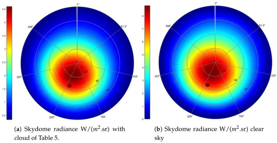 DIRSIG uses MODTRAN for its atmospheric processing. It also creates a sky-dome environment map for illumination which is created by MODTRAN based lookup tables [27]. The texture applied to geometry is used as material and thermodynamic database identifier [13]. Symbols of Equation (2) are explained in Table 2.
