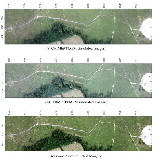 - Pereira, W.; Richtsmeier, S.; Carr, S.; Kharabash, S.; Brady, A. A comparison of MCScene and CameoSim simulations of a real scene. In Proceedings of the 2014 6th Workshop on Hyperspectral Image and Signal Processing: Evolution in Remote Sensing (WHISPERS), Lausanne, Switzerland, 24–27 June 2014; pp. 1–4. [Google Scholar] [CrossRef]