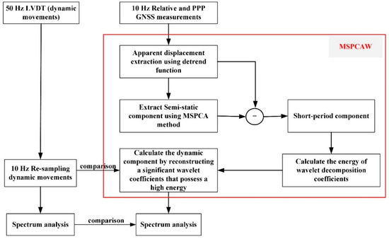 where E is the wavelet total energy, Sj is j decomposition level of short-period movement components; and n is the number of decomposition levels. Figure 2 illustrates the development model and processing. To evaluate the performance of MSPCAW in extracting the dynamic component, their results were compared with LVDT observations.