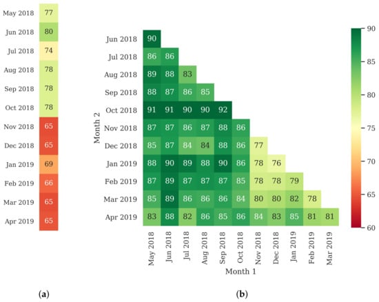 Sample classification accuracy for: (a) one month and (b) all combinations of two months S2 5-band images.