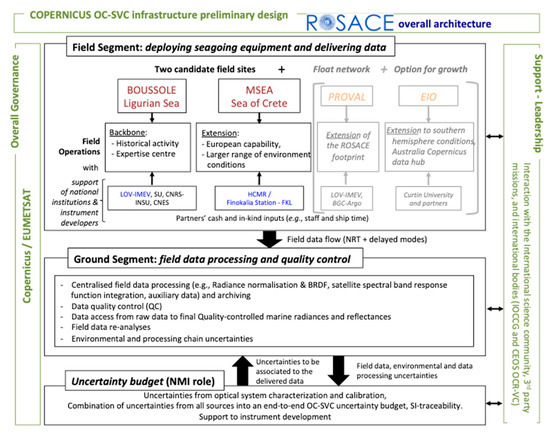 Overall architecture proposed for radiometry for ocean colour satellites calibration and community engagement (ROSACE).