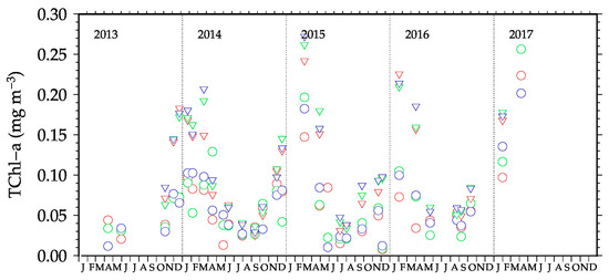 - [TChl-a] concentration < 0.1–0.2 mg m−3 in summer and fall.