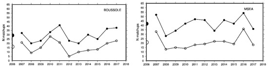 Until now, two field programmes have provided space agencies with OC-SVC-quality field observations, both using a moored optical buoy. The marine optical buoy (MOBY [13,14]) has been in operation since 1995 off the island of Lanaï in the Hawaiian archipelago. It continuously delivers hyperspectral reflectance for SVC of the NASA and NOAA instruments (sea-viewing wide field-of-view sensor, SeaWiFS, moderate resolution imaging spectroradiometer, MODIS and VIIRS), and has also been used by international missions, e.g., the European Space Agency (ESA) medium resolution imaging spectrometer (ENVISAT/MERIS), and the Japan Aerospace Exploration Agency (JAXA) global change observation mission-climate, second generation global imager (GCOM-C/SGLI). Another SVC programme was set up to support European OCR missions, at that time the ESA ENVISAT/MERIS. This programme is named BOUSSOLE (“BOUée pour l’acquiSition d’une Série Optique à Long termE” [15,16]) and has been operating continuously since 2003 at an open ocean site in the Northwestern Mediterranean Sea. It is currently used for SVC of the Copernicus Sentinel-3A and -3B OLCI instruments and for the GCOM-C/SGLI. Data from both programmes have also been used for the SVC of satellite sensors not specifically designed for ocean colour applications such as the thematic mapper (TM) on Landsat 5 and 7, the operational land imager (OLI) on Landsat 8, and the multispectral instrument (MSI) on Sentinel-2A&B [17,18,19].