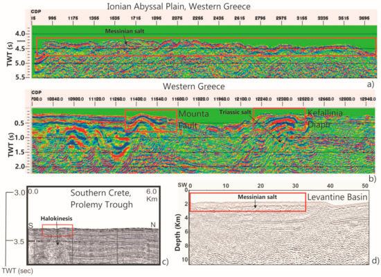 - Kokinou, E.; Kamberis, E.; Vafidis, A.; Monopolis, D.; Ananiadis, G.; Zelilidis, A. Deep seismic reflection data from offshore Western Greece: A new crustal model for the Ionian Sea. J. Pet. Geol. 2005, 28, 81–98. [Google Scholar] [CrossRef]