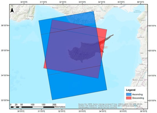 Sentinel-1 SAR acquisitions were downloaded from the European Space Agency (ESA) Copernicus Open Access Hub [68] to study the impact of the landslide to infrastructure in the case study near Pissouri, described before.