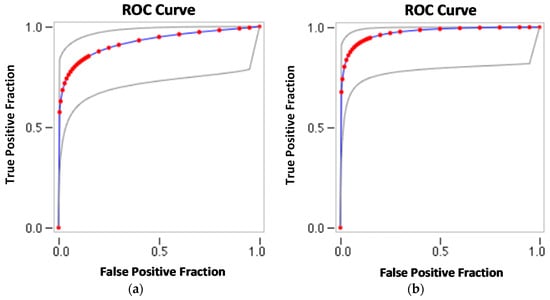 - Eng, J. ROC Analysis: Web-Based Calculator for ROC Curves. Available online: http://www.rad.jhmi.edu/jeng/javarad/roc/JROCFITi.html (accessed on 18 March 2020).