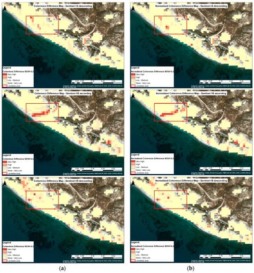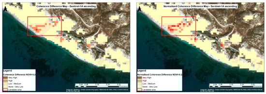 The distinction between coherence changes due to geological hazards and coherence changes due to natural variations was attempted by calculating the coherence change differences, and normalized coherence differences between the pre-event coherence and co-event coherence.