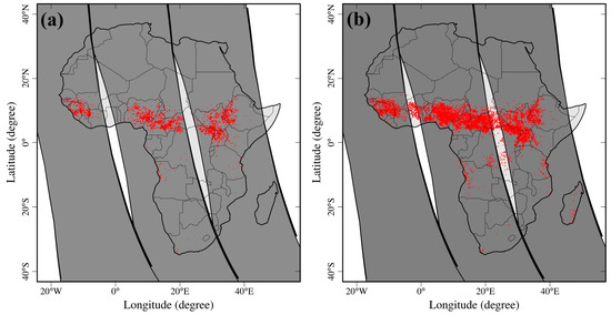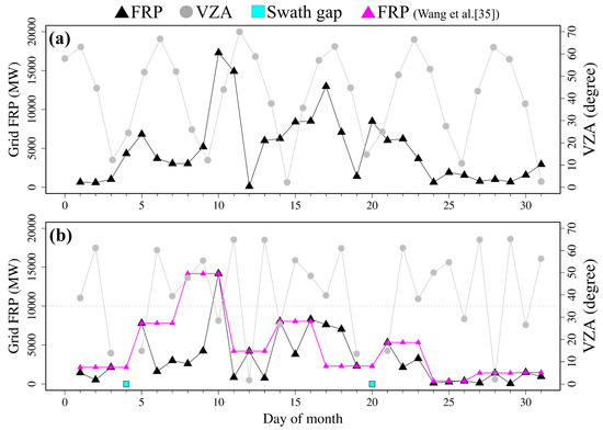 3.3. Investigation of Missing MODIS FRP inside Equatorial Swath Gaps