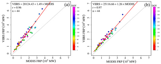 - Li, F.; Zhang, X.; Kondragunta, S.; Csiszar, I. Comparison of Fire Radiative Power Estimates From VIIRS and MODIS Observations. J. Geophys. Res. Atmos. 2018, 123, 4545–4563. [Google Scholar] [CrossRef]