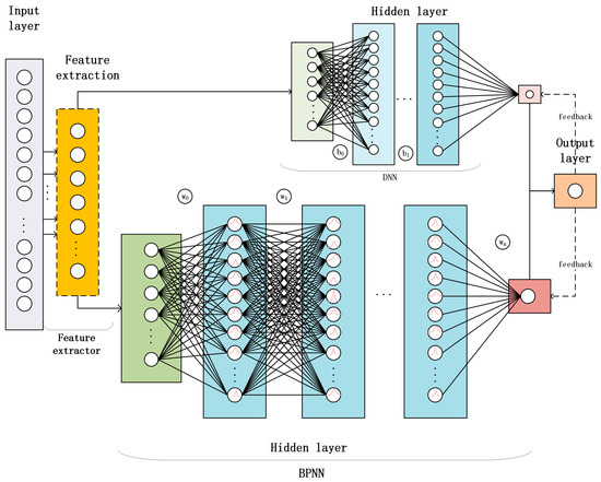 We start setting the BPNN model with L hidden layers and assume that the target content level of each water quality parameter is , and the input feature matrix is . Thus, the likelihood for target weights in the output layer [68] is