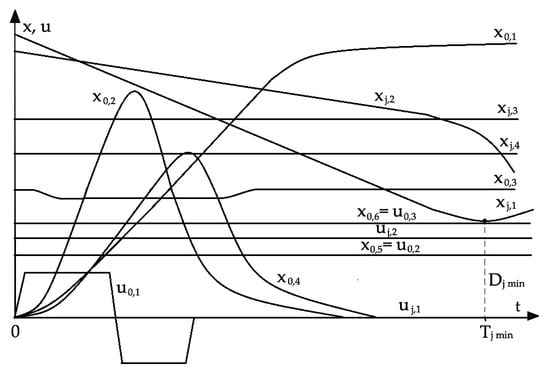 The strategy of the j-th object leads to a game balance situation that is determined by Nash [] equilibrium points. The optimal control of the j-th player, as an object or transport process, is determined from the following relationship: