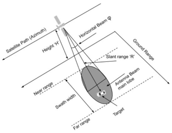 where is the satellite velocity, and R is the slant-range distance between the sensor and target. An illustration of this case is shown in Figure 5.