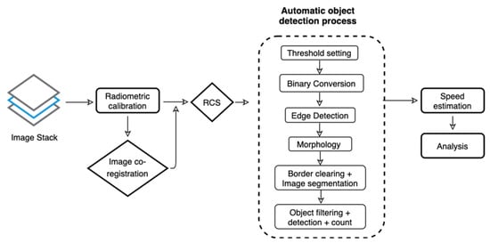 Workflow of the proposed method for the detection of moving vehicles based on SAR amplitude imagery.