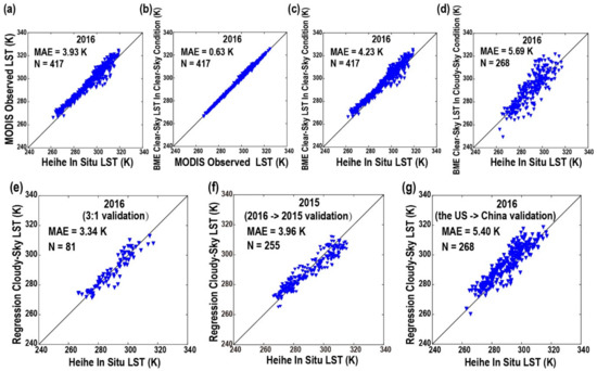 - Zhang, Y.; Chen, Y.; Li, Y.; Xia, H.; Li, J. Reconstructing One Kilometre Resolution Daily Clear-Sky LST for China’s Landmass Using the BME Method. Remote Sens. 2019, 11, 2610. [Google Scholar] [CrossRef]