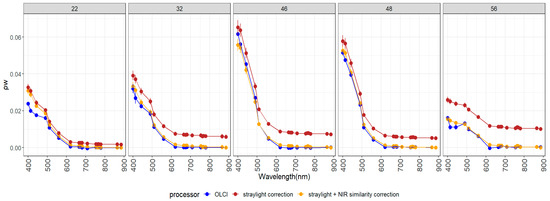 The straylight correction was applied to all data. An example of the straylight and NIR similarity correction effects on is shown in Figure 7.