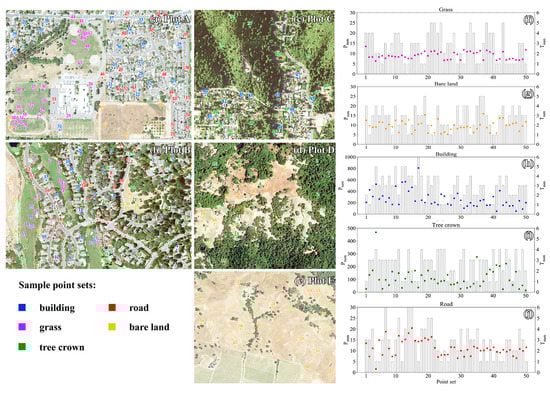 To evaluate the LRI correction methods, we selected point sets from five land cover types. The points in each sample point set (with an area of 3 m 3 m) were from the same land cover type. For points from one point set (from road, bare land, grass, tree crown, or building), the similarity among their post-corrected LRI values should be higher. Then, we calculated the mean (), standard deviation (), and coefficient of variation (CV) of pointwise LRI for each point set:
