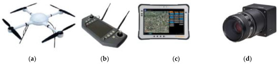 AI-RIDER YJ-1000-HC Multi-Rotor UAV and PhaseOne iXU150 Camera. (a) Body; (b) Remote controller; (c) Ground control station; (d) Camera.