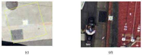 Diagrams of the square aerial photogrammetric targets. (a) Example 1 of square targets; (b) Example 2 of square targets; (c) Local enlargement of example 1; (d) Local enlargement of example 2.