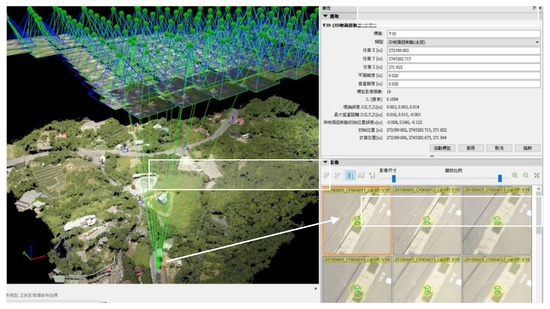 A UAV flight control computer was connected through the camera’s external shutter release. When the UAV reached the test area, the flight control computer triggered the camera to capture images and store them according to the flight plan. An AHRS (attitude and heading reference system), integrated with GPS signals, was installed on the drone. The flight control computer recorded the camera position by GPS and AHRS data, when each shot was triggered, for subsequent UAV aerial photogrammetric processing. The altitude was set to 300 m, and the ground resolution was set to about 3 cm in order to collect images and obtain high-precision aerial triangulation adjustment results economically. The waypoints were planned using a side-lap and end-lap of about 80% to reduce shadows and increase the visibility of objects and landmarks in order to more easily stereo-map more terrain details. Additionally, the dronestagramming range was expanded beyond the test area to ensure the quality and reliability of the UAV aerial photogrammetry.