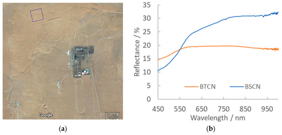 (a) The satellite image of the Baotou site; (b) the reflectance of BTCN and BSCN sites.