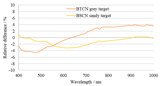 At the Baotou site, the surface-reflected radiance is measured by several automatic observation systems of ground-reflected radiance (one on the grey target and two on the sandy site) developed based on commercial Colorimetry Research (CR) series spectrometers produced by Colorimetry Research, Inc. The systems cover the spectral region from 380 to 1080 nm, with a spectral resolution (i.e., full width at half maximum, FWHM) of 2 nm, have nominally a 3° field of view and are mounted at a height of 2.5 m (BSCN) or 2.0 m (BTCN) (see Figure 2). They observe the ground at nadir every 2 min.