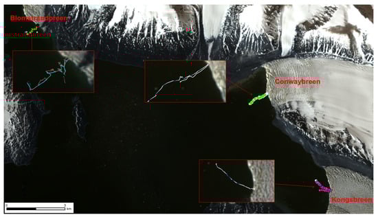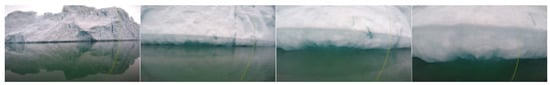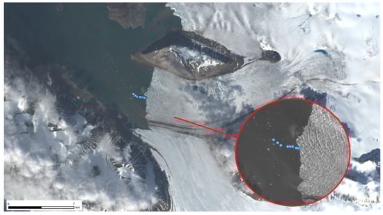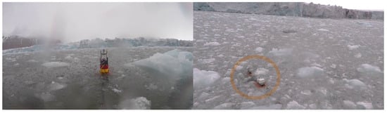 In this situation, as well as in similar cases, direct measurements in the proximity of glacier fronts are often lacking because the possibility of sudden falls of massive ice blocks make data acquisition in these areas extremely dangerous. The navigation is even forbidden in this area due to safety reasons (see Figure 3).