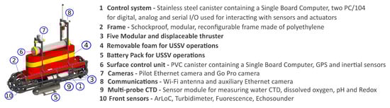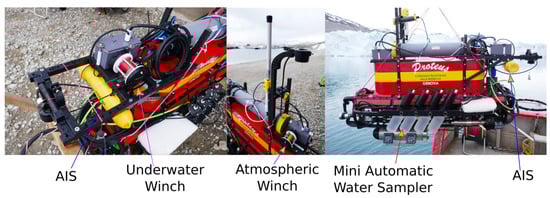During the 2017 and 2018 campaigns, PROTEUS was mainly used in the USSV configuration shown in Figure 10 and equipped with different sensors, samplers, and tools the details of which will be provided in Section 4.2 and Section 4.3 respectively.