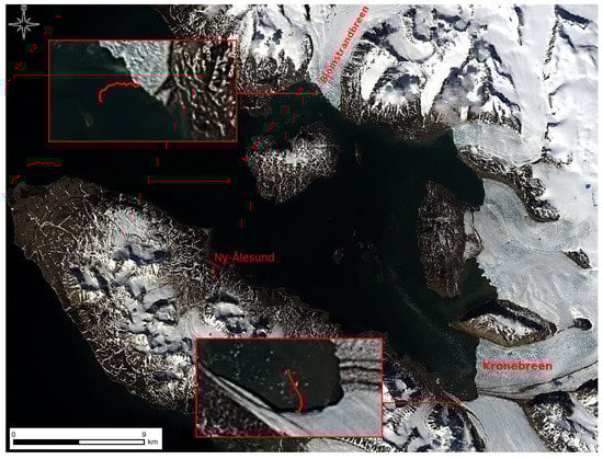 Therefore, the Svalbard archipelago can serve as an optimal Arctic research environment where it is possible to follow ecological changes [22], enhanced by the presence of manifold international polar research bases settled in Ny-Ålesund. In the inner part of the Kongsfjorden, many glaciers reach the sea with marine fronts that form a high vertical wall of ice protruding above seawater. The various processes [23] contributing to Arctic amplification of climate warming link the local observations recently recorded in Ny-Ålesund in the Kongsfjorden with processes occurring both in the Arctic and in the Northern hemispheric mid-latitudes.