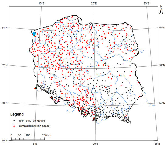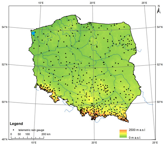 Location of telemetric rain gauges in Poland.