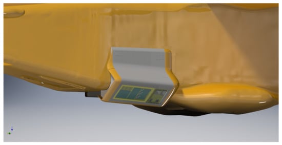 To mount the antennas to the body of an aircraft in an optimal way, a dedicated antenna carrier is needed. Such a carrier for DLR’s Do228-212 research aircraft has been designed and is currently under construction. A screenshot of the CAD model on the airplane is shown in Figure 5. The carrier will be placed in the lower middle part of the aircraft’s body at the right side (starboard) and will support the antennas with about 45 mechanical steering in elevation. This configuration guarantees a minimum of multi-pass effects and electromagnetic interference with the body of the airplane and optimizes illumination in the important range of 30–60 incident angles.