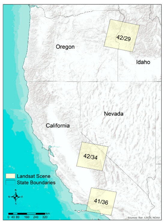 The sites were in California and Oregon, within three Landsat-5 TM scenes across the Western US covering a wide range of environmental gradients (Figure 1; Table 1). Google Earth (Google Inc., 2013) visual inspection allowed the picking of sampling sites with no disturbance or rapid growth during the sampling period, and homogenous shrub cover of at least 1 km2 as location of NFMD sites can be off by tens or hundreds of meters. Other site requirements were to have at least 20 Landsat-5 TM images with <10% cloud cover over at least six years that covered as much as possible of the phenological cycle of the species sampled. This work selected only field sampling dates within ±6 days from image acquisition to reduce the impact of LFMC temporal variation between NFMD and Landsat-5 TM acquisition. LFMC data of the selected sites covered the whole fire season, from the beginning of spring until the end of the fall, although in some cases sampling was extended year-round.