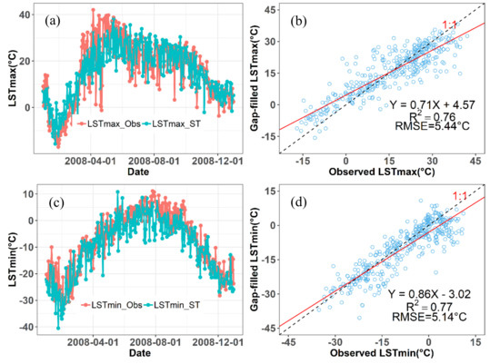 3.1. Evaluation of Spatio-Temporal Composite LST