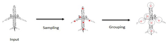 Basically, due to the inherent unstructuredness of point clouds, local structure modeling is based on three basic operations: sampling, grouping, and a mapping function. The mapping function is usually approximated by a multilayer perceptron (MLP) which maps the features of the nearest neighbor points into a feature representation that encodes higher-level information; see Figure 7. These operations are briefly explained before reviewing the various approaches.
