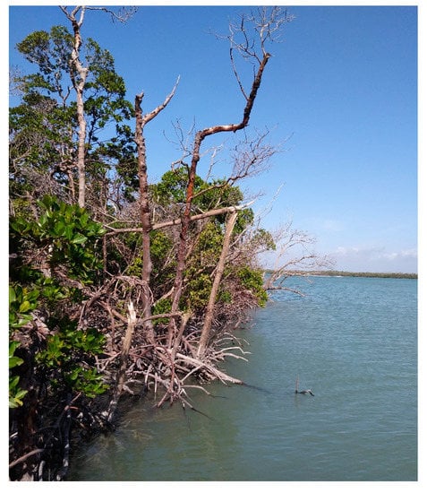 - Lewis, R.R., 3rd; Milbrandt, E.C.; Brown, B.; Krauss, K.W.; Rovai, A.S.; Beever, J.W., 3rd; Flynn, L.L. Stress in mangrove forests: Early detection and preemptive rehabilitation are essential for future successful worldwide mangrove forest management. Mar. Pollut. Bull. 2016, 109, 764–771. [Google Scholar] [CrossRef]