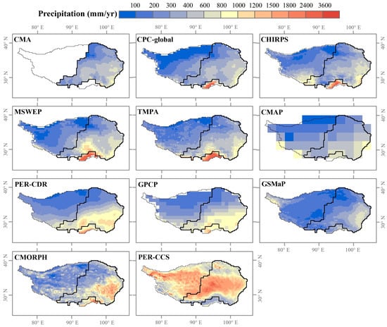 Precipitation is a critical variable dominating land surface hydrological processes, e.g., runoff generation and soil moisture dynamics, and regulating energy balances associated with latent and sensible heat fluxes [,]. Accurate estimation of precipitation is necessary for water resource management, climate change detection, and hydrological modeling, and it is particularly important for the Tibetan Plateau (TP), which is regarded as the Asian water tower for sources of major Asian river basins [].