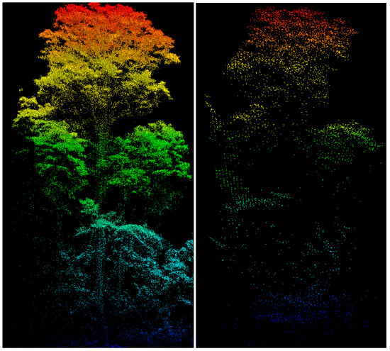- Thiel, C.; Schmullius, C. Comparison of UAV photograph-based and airborne LiDAR-based point clouds over forest from a forestry application perspective. Int. J. Remote Sens. 2017, 38, 2411–2426. [Google Scholar] [CrossRef]
