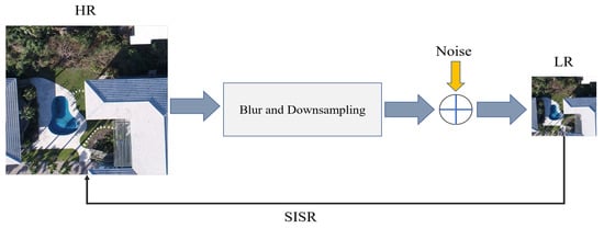 where is the corresponding HR image, represents a degradation function, and is a set of parameters, e.g., the parameters of the unknown convolutional kernel, the scaling factor, and some noise related factors, contributing to the degradation process. Under general conditions, the degradation process from is unknown and only LR image, , is provided. Thus, the SR operation, the reverse path in Figure 1, is an extremely challenging task, which effectively results in a one-to-many mapping from LR to HR image space [25].