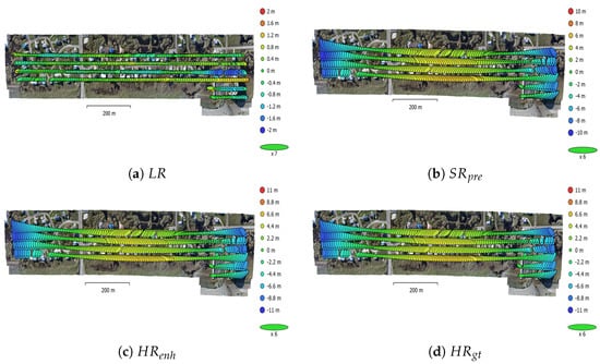 Images captured at high spatial resolutions, in general, return the most keypoints and keypoints correspondences in overlapping images. In addition to the major contribution of the natural texture in the scene, the quality of the generated point cloud highly depends on several other factors including the density, sharpness, contrast, and resolution of the image content within the image set [78]. Moreover, decreasing the image acquisition distance, or flight height above ground, leads to an increase in the image spatial resolution or a finer GSD. This will further enhance the spatial density and spatial resolution of the resulting point cloud [78]. However, the uncertainty in keypoints extraction and matching, which is a typical issue in all low quality LR images, may result in poor estimation of a camera’s and parameters leading to a very inaccurate and erroneous 3D point cloud.
