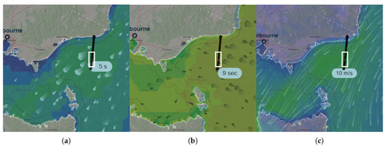 In the case under study, the wavelengths of the wind and swell waves are between 39 m and 126 m. Note that, the aggregation of the different waves may cause a different set of wavelengths or periods right with a minimum wavelength of 39 m and a maximum wavelength of 126 m. The following sections show a complete analysis of this second peak and its relations to the sea state conditions. As stated in [12,13], wind-driven and swell waves are combined forming different waves with different periods and heights. The wind and swell components (or even multiple swell components) can be separated by means of spectral analysis [14].