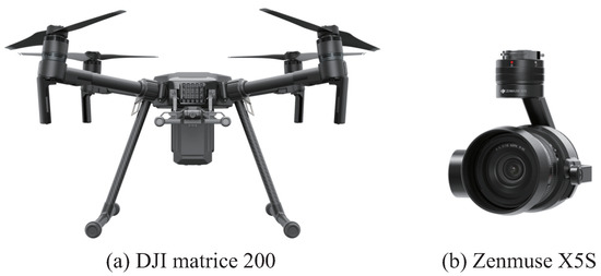 Airborne platform. (a) DJI matrice 200 quadcopter. (b) Zenmuse X5S gimbal and camera.