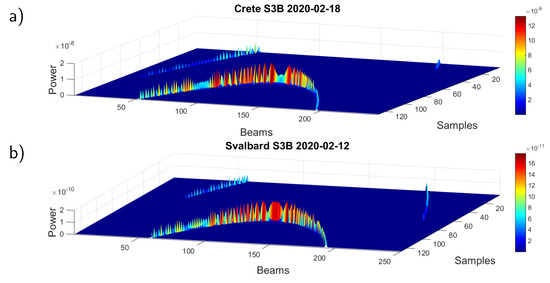 SRAL represents a further technological advancement with respect to traditional altimeters since it records Doppler information, permitting Synthetic Aperture Radar (SAR) processing. CryoSat-2 was the first altimeter to operate in this mode, and showed that SAR provides finer spatial resolution of the echoes and an improved signal-to-noise ratio through multi-looking [3,4]. However, CryoSat-2 had only operated in this “SAR mode” over the cryosphere and selected oceanic regions and lakes. SRAL operates in this SAR mode everywhere, so that a detailed comprehension and quantification of the differences between this new mode of operation and that employed in previous altimeters is required to fulfil the objective of extending the altimetric climate record in a consistent manner. Such differences can be assessed by a separate processing of the signal that ignores the Doppler aspect and produces Pseudo Low Resolution Mode (PLRM). This is similar to the operating mode on preceding missions, but not completely equivalent because the grouping of pulses in bursts affects their internal correlations [5].