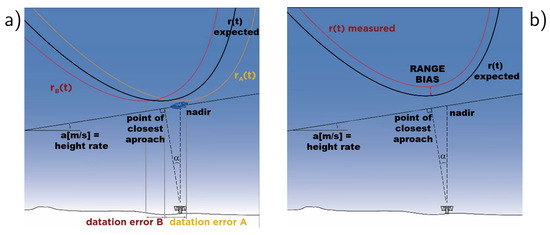 - USO frequency: For measuring the two-way travel of the chirp, a clock is needed. This clock is built with an exceptional precision, and therefore called Ultra-Stable Oscillator (USO). However, there may be anomalies in such performances: the EnviSat RA2 USO clock period unexpectedly generated a jump equivalent to 5.6 m and oscillations of 30 cm around the orbit. A specific solution [14] was designed to cope with this anomaly and correct the range measurements. A drift in the clock frequency corresponding to several millimetres per year is expected, with its impact on range being multiplicative.