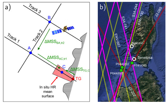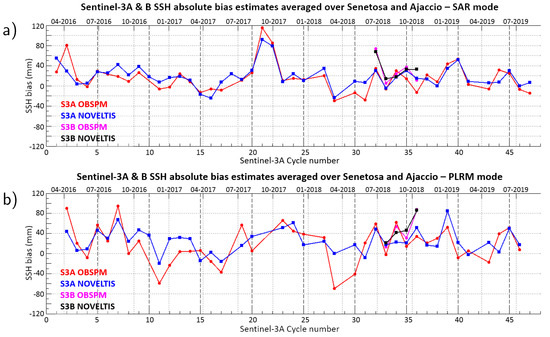 - Bonnefond, P.; Laurain, O.; Exertier, P.; Boy, F.; Guinle, T.; Picot, N.; Labroue, S.; Raynal, M.; Donlon, C.; Féménias, P.; et al. Calibrating the SAR SSH of Sentinel-3A and CryoSat-2 over the Corsica facilities. Remote Sens. 2018, 10. [Google Scholar] [CrossRef]